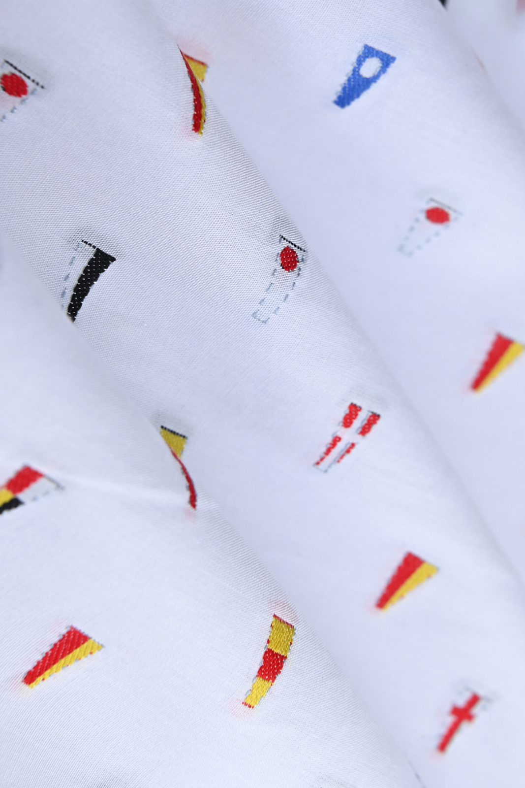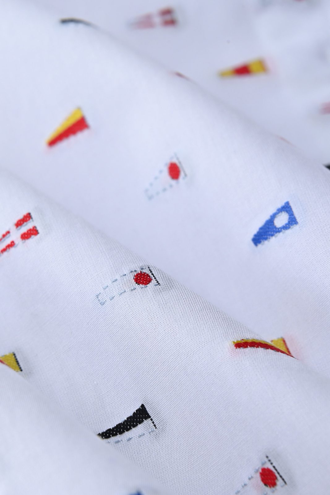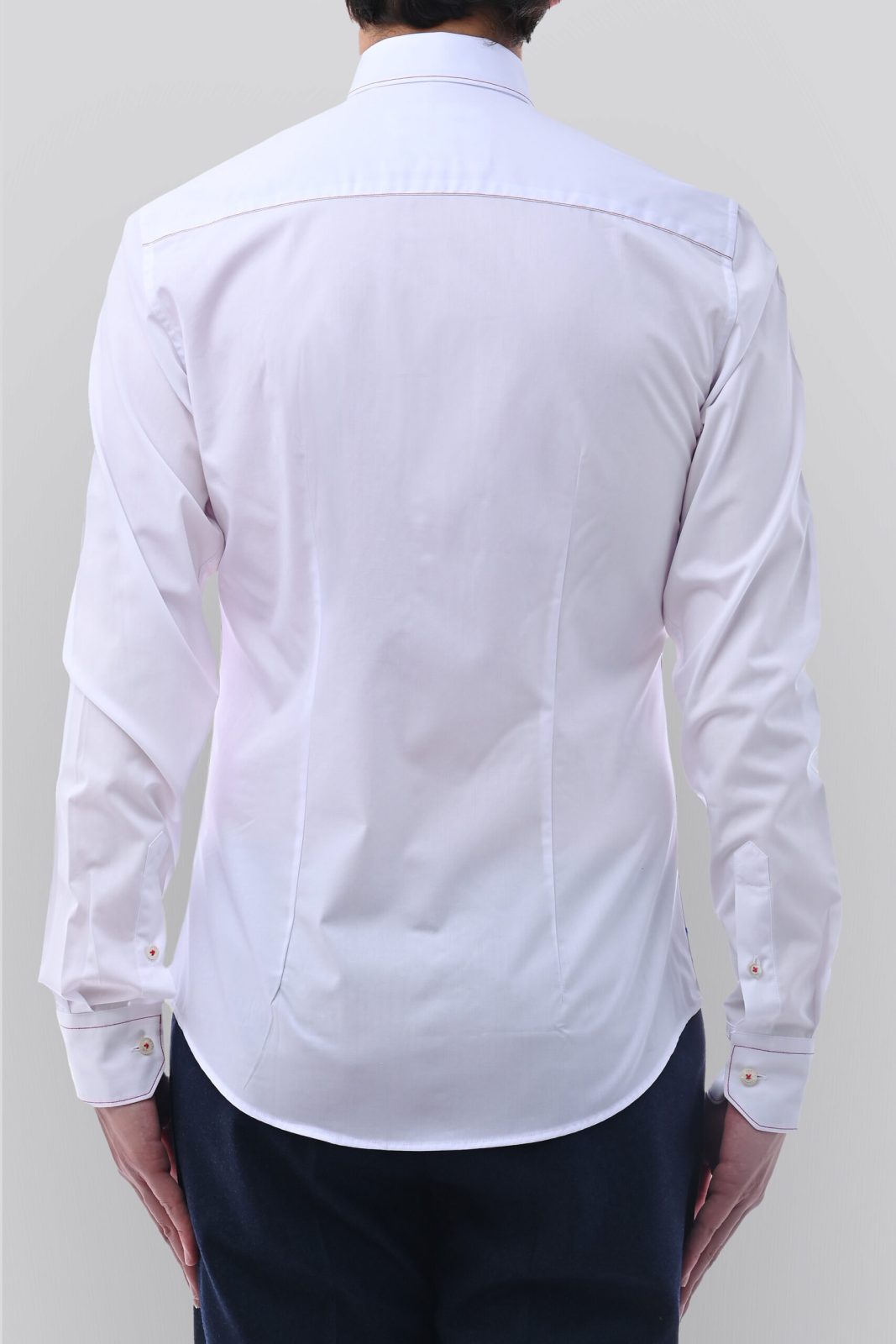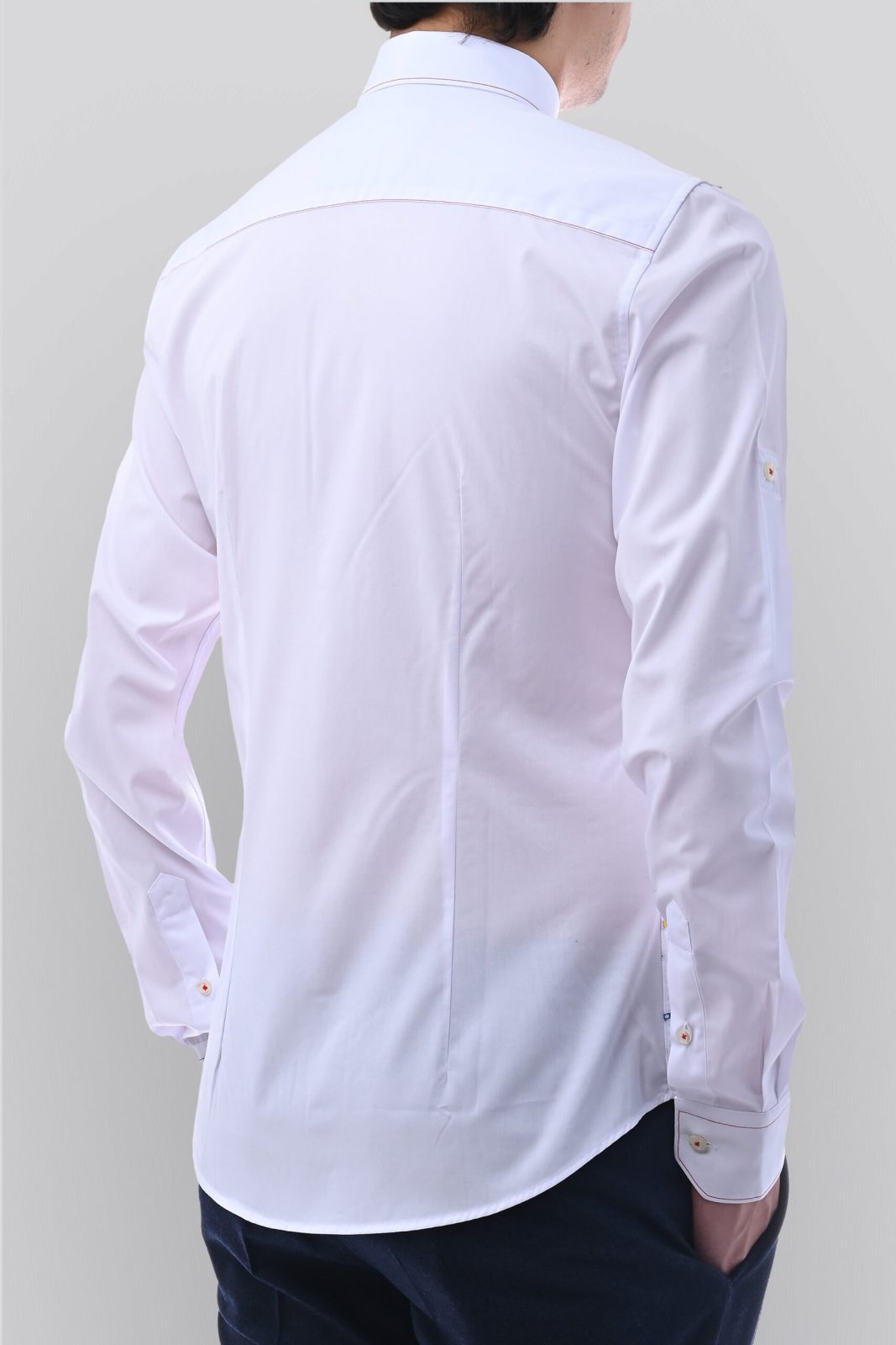 Camasa casual extracambrata, cu guler cu nasturi, cu piepti din tesatura speciala cu motive vesele discrete, cu maneci a caror lungime se ajusteaza, cu detalii de garnitura la interiorul gulerului si mansetelor, dar si cusaturi decorative in contrast la guler, mansete, umeri si spate.