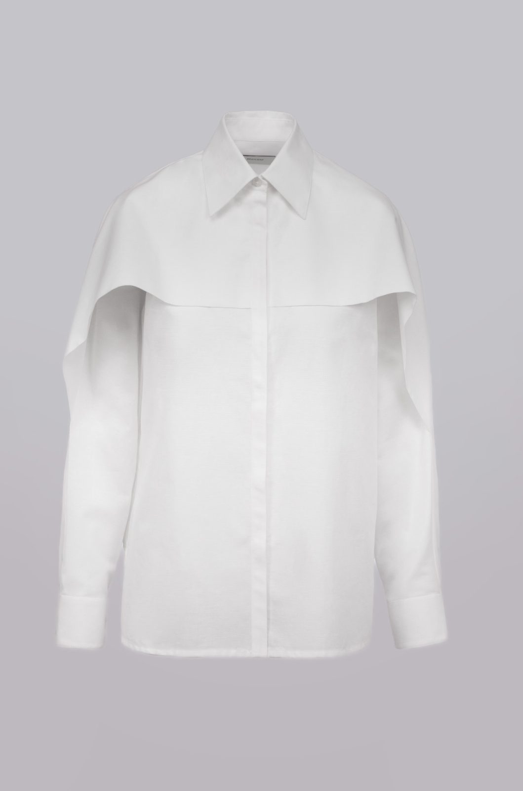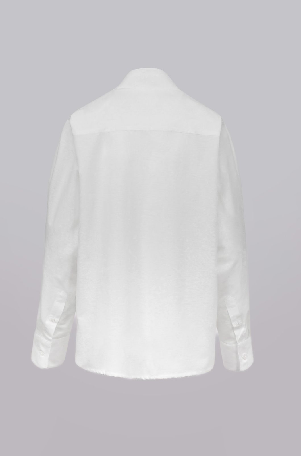 Camasa regular fit, fenta cu nasturi ascunsi, piept cu volane pe ambele parti, confectionata din tesatura de bumbac 100%, guler clasic, slituri laterale, maneca lunga si manseta clasica cu un nasture.