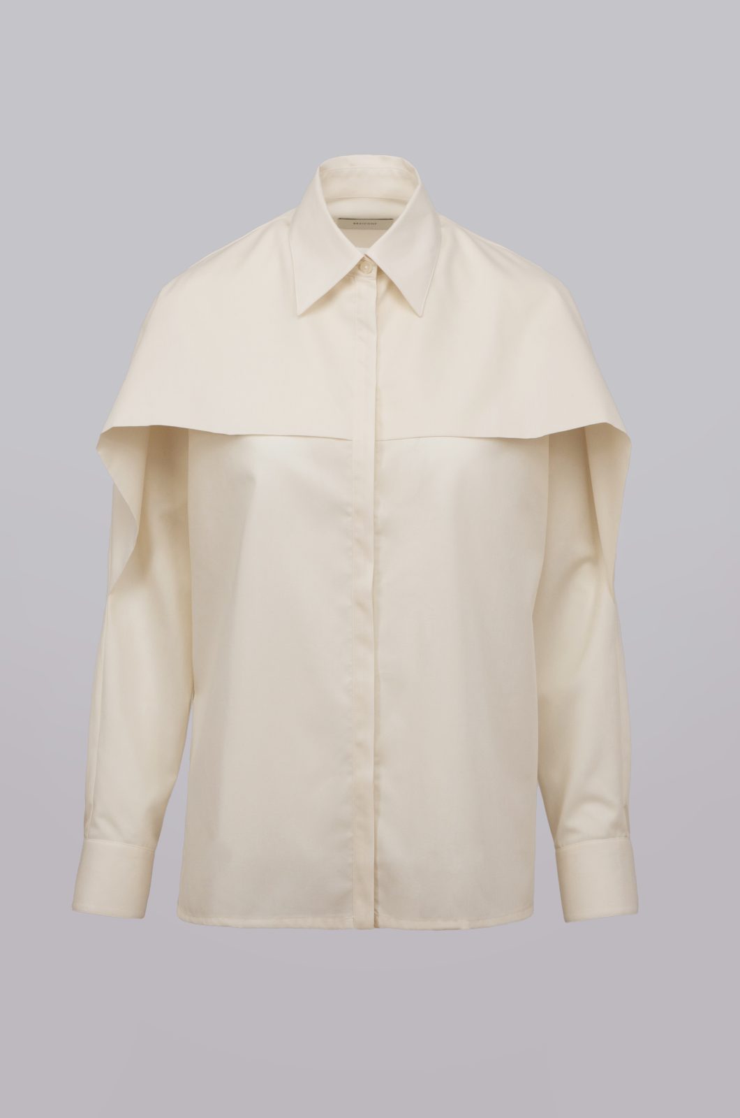 Camasa regular fit, fenta cu nasturi ascunsi, piept cu volane pe ambele parti, confectionata din tesatura de bumbac 100%, guler clasic, slituri laterale, maneca lunga si manseta clasica cu un nasture.