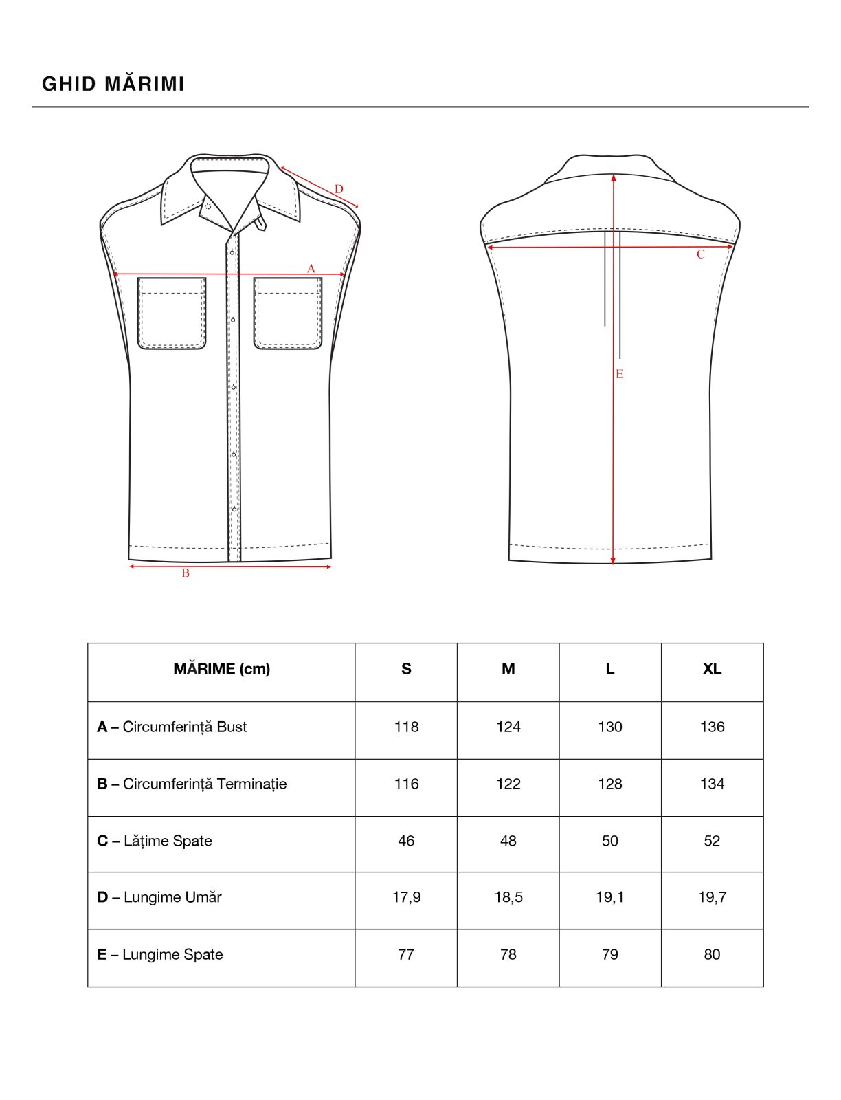 Vesta dreapta regular din tesatura de bumbac 100%, cu slituri laterale, guler clasic cu brida, inchidere cu nasturi, completata cu doua buzunare pe piept si pliu pe spate.